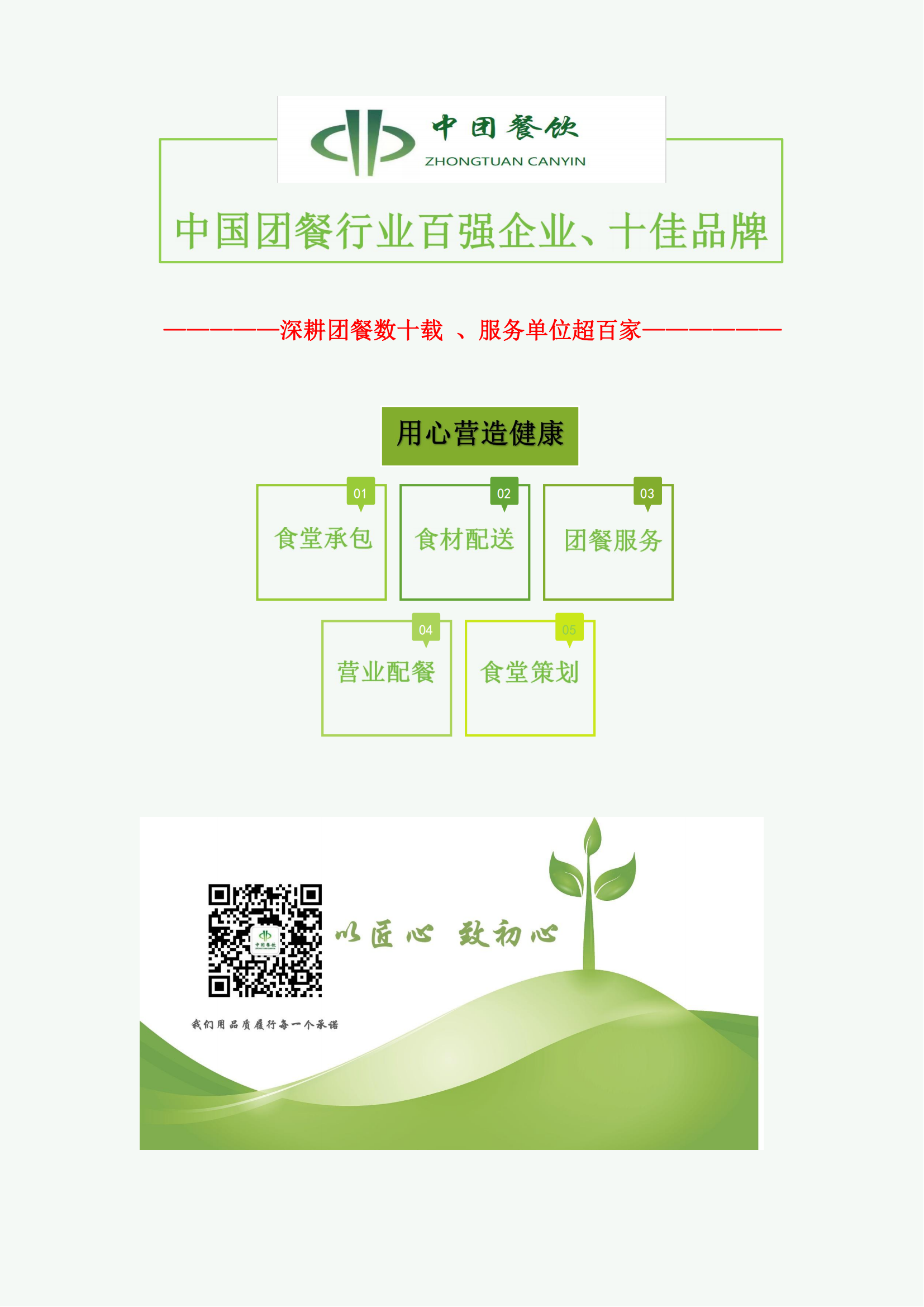 福州中團(tuán)餐飲管理有限公司是一家專業(yè)承包醫(yī)院 、 學(xué)校以及企事業(yè)單位食堂的餐飲管理企業(yè),是“安全餐飲 ”的倡導(dǎo)者和實(shí)踐者,為大眾提供“安全、綠色、營養(yǎng)、健康”的膳食服務(wù)。公司先后通過食品安全管理體系、質(zhì)量管理體系、環(huán)境管理體系、職業(yè)健康安全管理體系、危害分析與健康控制點(diǎn)等五大體系認(rèn)證。