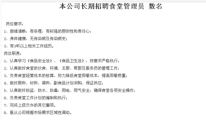 您現(xiàn)在的位置:福州中團(tuán)餐飲管理有限公司 >> 人才發(fā)展 >> 人才招聘